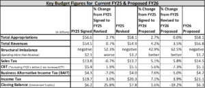 Governor Murphy’s current $58.1 billion appropriation level is $1.4 billion or almost 3% more than last year, despite his reported push for his commissioners to find 5% cuts to their budgets. That is $23.4 billion or 67% more than the $34.7 billion budget Governor Murphy inherited just seven years ago. That kind of rapid spending growth is not sustainable and has put New Jersey into a vulnerable budget situation with repeated structural imbalances where appropriations significantly exceed revenues. The proposed FY26 state budget has $1.2 billion more in spending than revenues. While that structural deficit is down from $2.1 billion in the current FY25 budget, there has been a structural imbalance in six of the past seven Murphy budgets, with an astounding cumulative total of $7.6 billion more appropriations than revenues. In contrast, the prior eight budgets only had three structural deficits with cumulative total revenues exceeding appropriations by $23 million over eight years.